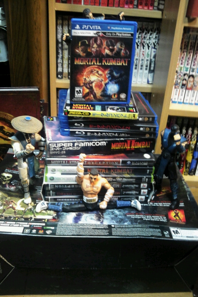 何をって??またまたご冗談を 無論これ↓に決まってますぜよ旦那ァ!! VITA版MortalKombat!! ついでなんで今までのも並べて記念撮影 DS版UMK3とPSPのアンチェインドが 行方不明で見当たらないがまあいいや ・ ・ ・ 4、5、とかPSの番外編は未プレイだけどまあいいや とりあえず折角なんで落書き貼り(久々の版権絵ってやつか、、) 俺の相棒 赤い魔術師ERMAC 色塗り適当だわ コス1とコス2混ざってるわで 色々無茶苦茶絵だがご勘弁を ・ ・ ・ そういや初めて見た2DモーコンのコンボはUMK3のこいつの空コンでした あれ以来モーコンに対する認識が180度変わったなー 「うお!ちゃんとしたコンボあるじゃんこのゲーム!!」 (だってUMK3にはトレーニングモードなんて無かったし、 CPUも強かったからコンボ練習どころじゃなかったし) ・ ・ ってわけで、あの時の衝撃を胸に、今もコイツ一筋 超能力で浮かせて、飛ばして、ぶっちぎって、殺りまくってます。 ・ 今作のERMACはUMK3とDeseptionの両方のコンボの名残を残しつつ 新しい感じのコンボも繋がって最高だぜ!! ・ ・ ・ ・ 、、、って事で、ついでなんでコンボレシピでも (FP=□ボタン、BP=△ボタン、FK=×ボタン、BK=〇ボタン、J=ジャンプ) (要所要所でBP,BPなどで拾う時、多少前ステップでの距離調整が必須、Sと表記) ・ ・ 飛び込みからのコンボ 飛び込みJBP,←FK,BK,FocePoint,S,BP,BP,FoceLift,S,BP,BP,FocePush 12HIT、38%ダメージ 吹っ飛ばしてからFocePointで拾うワープコンボ (最後のFocePushをX-RAYアタックに変えれば13HIT、47%にダメージUP) ・ 空々戦用 JBK,FocePoint,JBK,FocePoint,↓FP,FoceLift,S,BP,BP,FocePush 11HIT、38%ダメージ 少し高めでJBKヒット時に狙う感じで (最後のFocePushをX-RAYアタックに変えれば12HIT、49%にダメージUP) ・ ●画面端限定 飛び込みJBP,←FK,BK,前JBK,FocePoint,S,BP,BP,FoceLift,S,BP,BP,FocePush 13HIT、40%ダメージ (最後のFocePushをX-RAYアタックに変えれば14HIT、49%にダメージUP) ・ 全ゲージ消費 飛び込みJBP,←FP,FP,BK,FoceLift,S,JBK,FocePoint,X-RAY 12HIT、57%ダメージ(とりあえず自己最大ダメ) (まあ基本海外との対戦で多少ラグがあるので、所々妥協する感じに、、 主にBP,BPで拾うとことかを削れば、ダメージは減るけど安定します。) ・ ・ ・ んじゃそんな感じで、 レッツFatality!!! PR