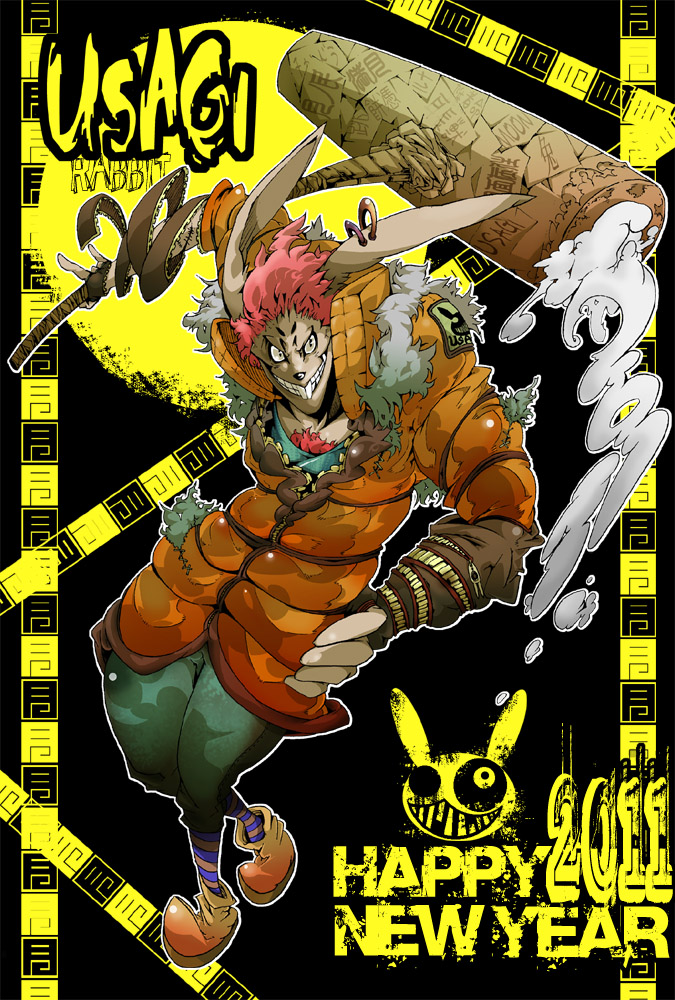 ・ ・ ・ ・ ・ ・ ・ ・ ・ ・ 新年! ・ ・ ・ ・ ・ ・ ・ 明け!! ・ ・ ・ ・ ・ ・ ・ ・ おめでござーっす!!! ・ ・ ・ ・ ・ とりあえず年賀状を初貼り!! 兔!! 武器は杵 ・ ・ ・ ホントは女キャラ描く予定だったけど 途中の落描きが気に入って、急遽変更して描いた化け物兔!! 耳の付き方がおかしいけど気にしない!気にしない! ・ ・ ・ あと、せっかくなんで女キャラ版の方も、さっと塗って貼っときゃーす! 兎っ!!!! ・ ・ ・ ホントはこの絵と、もう一枚別の絵使って 一枚目に兎のお面かぶった化け物の絵(はがきサイズのシールに印刷) 、、で、シールをめくるとお面外して着ぐるみを脱いだこの絵、、みたいな 二段式年賀状にしようとか考えてたけど、やっぱヤメヤメっす。 ・ ・ ・ まあそんな感じで 本年もよろしくお願いします!! |