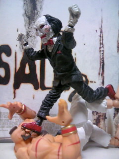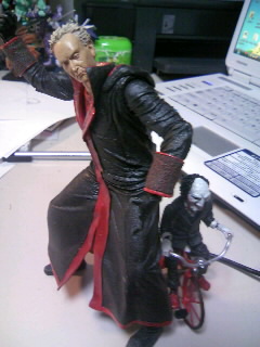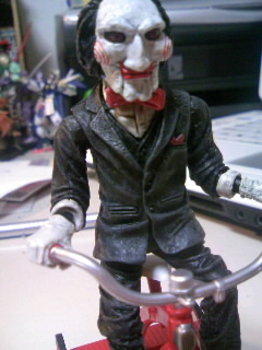 先日見物しに行ってきやした とりあえず写真 もう一枚、、、、、 ・ ・ ・ ・ ・ ってほぼ同じ写真じゃあねえか!! ええい!やかましい!!日光とか人ごみの関係で この角度でしか撮れなかったんだよチクショー!! ・ ・ ・ ・ 、、、、まあこれで東京のガンダムが攻めて来ても安心っすね (サイズ的に大分不利な気がするが、、、、) ・ ・ ・ ・ ・ ・ んでもってその帰りに三宮で途中下車して 本来の目的地(オイ!!鉄人は!!?) 年末恒例海外フィギュア大安売りに行ってきましたぜっ!! で、去年買いそびれた ジグソウ爺を即購入 お値段1200円ちょい (安い!!) 意外と似てるっしょ? ホントは豚マスク被ってるタイプが 売ってたら最高だったのだが、、、 ・ ・ ・ 贅沢は敵だ!!! バキ!ボキ!!ゴリリ!!! うげぁ!!!!サーセン!! まあ本体のジグソウさんは そのくらいにして ・ ・ おまけ?のこいつが これまた凄い出来が良いです (三輪車付き) ・ ・ ・ 三輪車の車輪の回転がすこぶる良く 少し押すとすぐかっ飛んでって事故るのはご愛嬌、、 ・ ・ そして更にこいつ、 本体のジグソウを差し置いて 凄く可動します ・ ・ ・ ・ ってかぶっちゃけこいつが 欲しかったんだよな!! ホントいい出来だよお前!! ・ ・ ・ ・ 、、、と、まあこんな感じでいつも通りに 年末テンション爆発中です、サーシッパ!! |