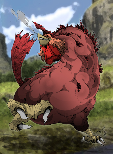 ギアーズ2も中盤で放置! 割り勘で買った侍道2も弟独占!!ぐああ!!! ・ ・ ・ 「安西先生…ゲームがしたいです…」 ・ ・ ・ ・ そんなこんなでまた久々の更新 ついでなんで落書きでも貼り 俺空想版イビルジョー 噂だけ聞いてて、実物見る前の頭の中では こんな鳥が暴れまわってた。 (色塗り手抜きな上、背景P2Gのもろ加工でサーセン) ・ ・ ・ 実物全っ然違ったけどな!! ・ ・ ・ ・ そもそも何で鳥だとか思ったんだよ!? ・ ・ 乱入してくるって聞いた時のイメージか? 、、、、違う ・ ・ ・ 多分、いや、絶対こいつのせいだ! ・ ・ P2Gのハンマー クックジョー!!! ・ ・ ・ ホント単純な脳構造だな、俺 ・ ・ ・ ・ 、、、まあそんな感じで、 ジョーを倒せる日はまだまだ遠そうだけど とりあえず今は描くべし!描くべしっすね!! ・ ・ ・ ・ ・ ・ ・ ・ ・ 、、、、、でも今日ぐらいは繋いでみよう いや!息抜き!息抜きだから!! |