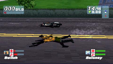 多分最初期にやった洋ゲーの一本 ・ ・ まあこの手のゲームは説明するより 見たほうがわかりやすい(レース開始は2分30秒辺りから) ・ ・ ご覧の通りのレースゲー 当時の雑誌(ライブ!3DOマガジン)に付いてた体験版ディスク内の このゲームを狂った様にやりまくってた小二の春、あれ夏? ・ ・ ・ まあゲーム内容は 通行人に蹴り入れたり、ポリ公をブッ飛ばしたり 眼前のライバル共を蹴散らしながらゴールを目指す そんな普通のバイクレースゲームです(普通違う!!) ・ いや、冗談抜きに面白いんだぜ?! ・ ・ ・ ちなみにこのゲーム、車に激突したりすると ・ ・ バイクはもちろんの事 乗ってる人間がそれ以上にぶっ飛んで行きます ・ ・ 当然、某髭カートみたいにジュゲムなんていないので ぶっ飛んだ後は自力でバイクの転がる場所まで戻らなきゃダメ モチ荒くれ者共の走り交うコースの中を、、、、、、 ・ ・ ・ これがもう轢かれる轢かれる! ・ ・ ライバル達だけじゃなく 一般車両にまで轢かれたりするからたまらない(時々ね) ・ 更にバイクに戻らずそのままゴールに向かうと なんと普通にゴールインできてしまうフリーダムさが、何か凄く洋ゲーらしくて好きだ (もちゴールイン後、突っ込んで来る後続車に轢かれまくるけど) ・ ・ PSとかにも続編が出てて、何かイイ感じに進化してた (警察側になって、お尋ね者を叩きのめすモードとかも追加されてる) ・ ・ ・ まあこんな感じ、、洋ゲーなんだから これくらいブッ飛んでる方がいいのさ ・ ・ 、、、だろう? って事で、次回はもっとブッ飛んだ自称「お使いゲーム」 POSTAL2の紹介でも、、、(やめろーーー!!) |